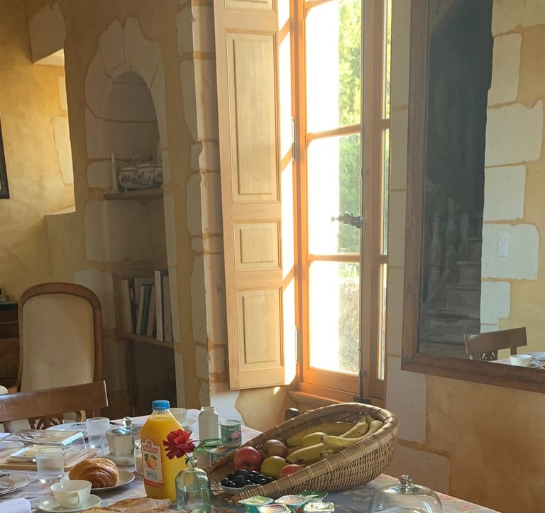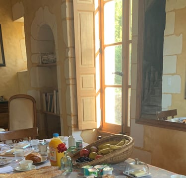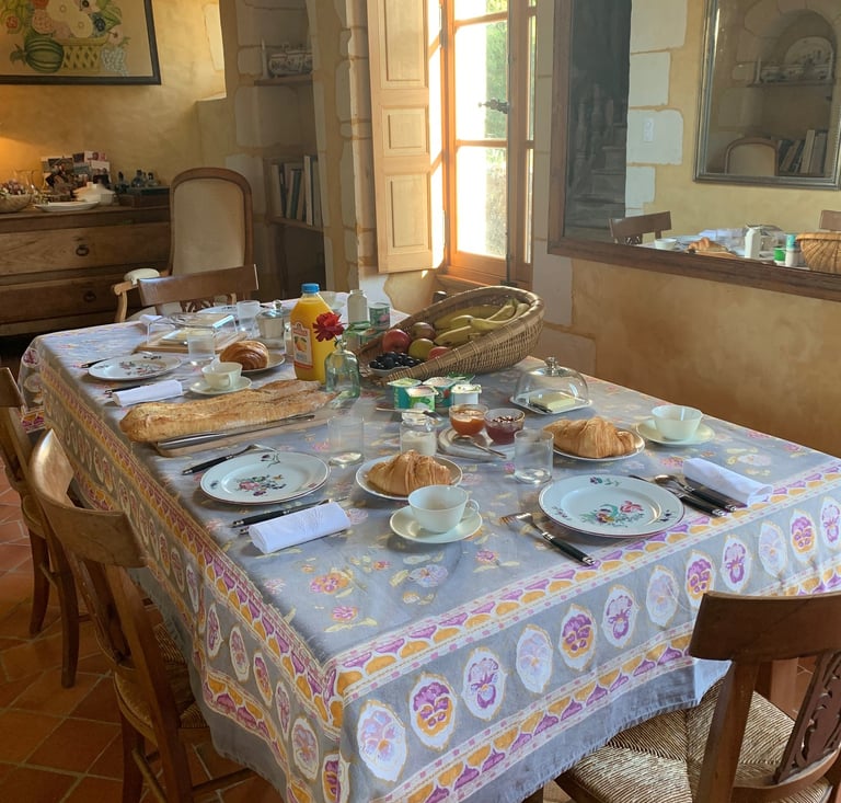 Profitez d'un délicieux petit déjeuner, très complet, avec fruits frais, confitures maison, jambon, fromage, thé, café ou chocolat chaud... Agrémenté de pain baguette et de croissant.