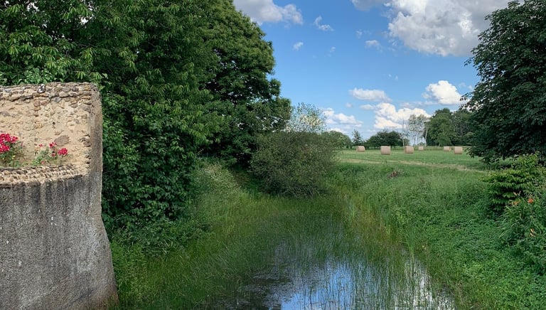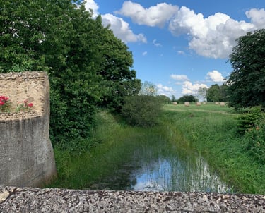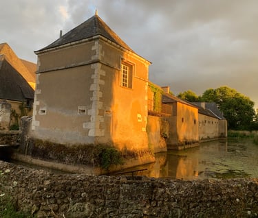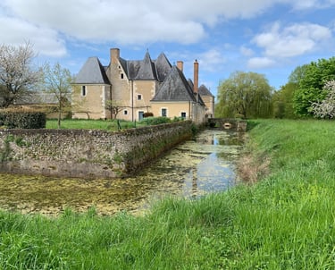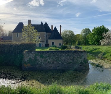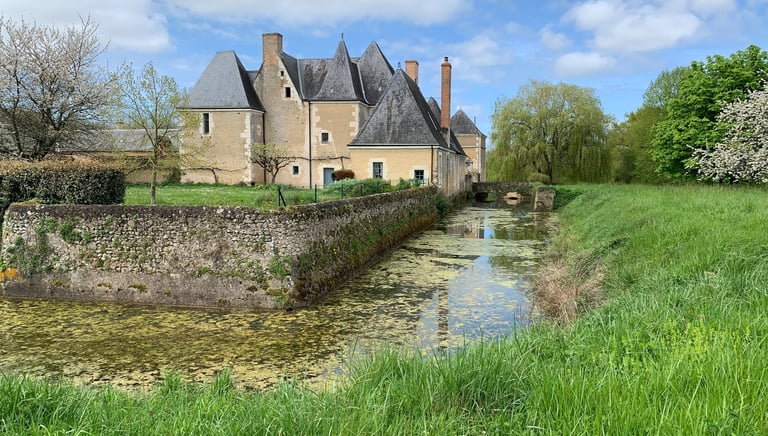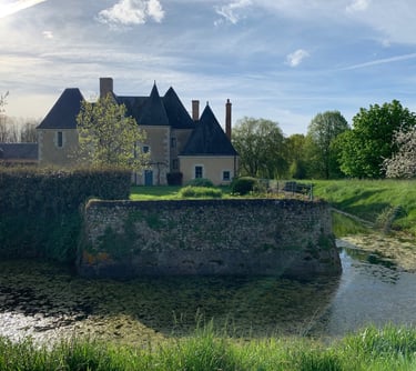 Au bout d’une large allée de chênes, un pont enjambe la douve en eau. Bienvenue dans un endroit paisible habité de nombreuses espèces d’oiseaux (lorio, martin-pêcheur, huppe fasciée, hirondelles, faucons, hérons, faisans...). Un éco système équilibré et préservé avec vigilance permet d’éviter les nuisances (grenouilles, libellules et chauve souris font le ménage).